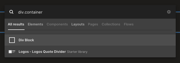 It would be amazing and save us a ton of time if we were able to type something like "div.container" on the Quick Find menu and have a div added to the canvas with a "container" class already applied.